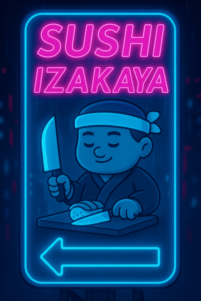 Sushi Izakaya – a promo for the Cyberpunk restaurant set that sits right next to the billboard.