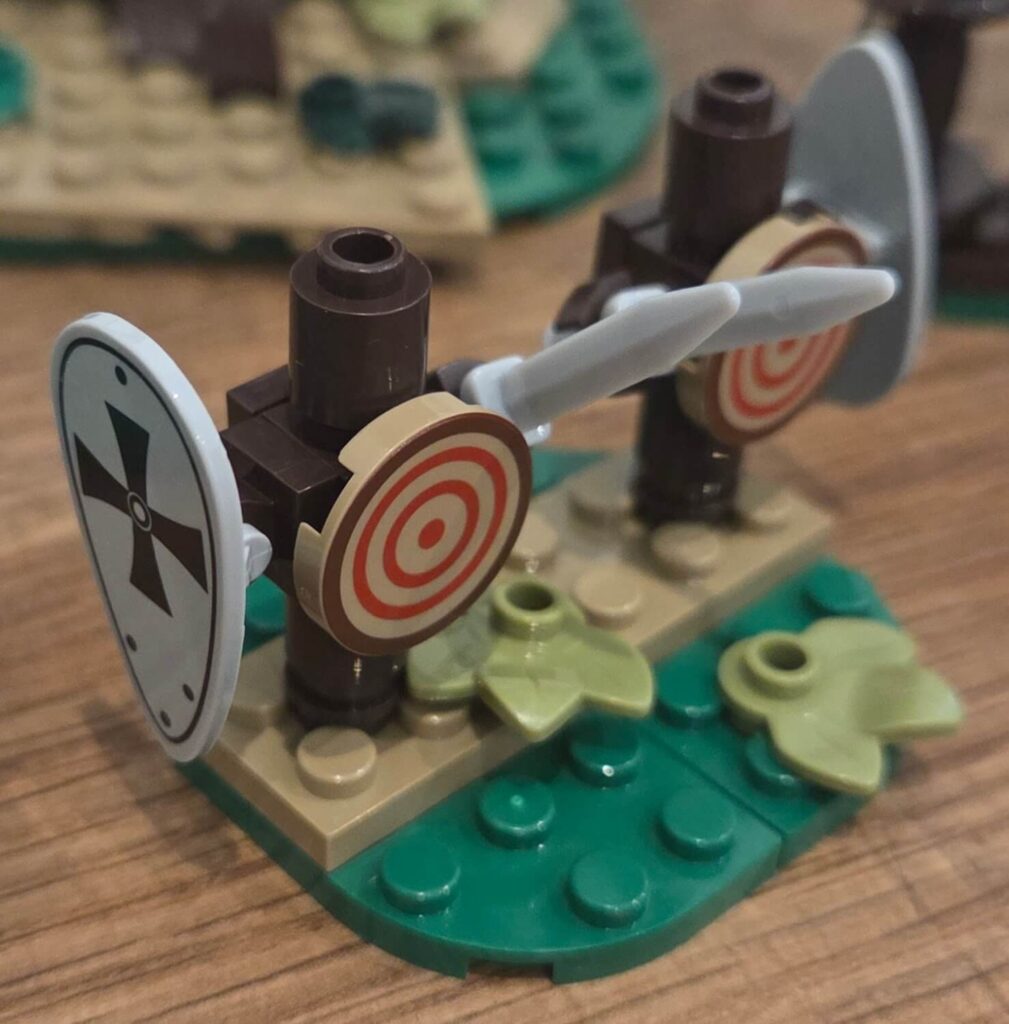 There are no minifigures included in this set. Personally, I would have liked at least one or two to bring the scene to life, especially given the training ground theme. That said, it’s not a deal-breaker and is fairly common with sets like this.