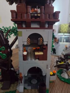 • Second floor: The wooden watch level, largely empty but ideal for placing figures on lookout