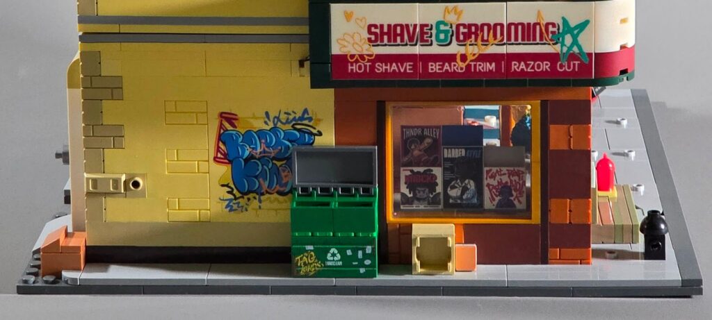 Yes, the Barbershop does follow the same general formula as those buildings. But personally, I see that as a strength rather than a weakness. When you walk down a real city street, buildings on the same block often share a similar style or structure. For me, this actually mimics real life quite nicely and helps the Street Fusion sets feel like part of a cohesive neighbourhood.