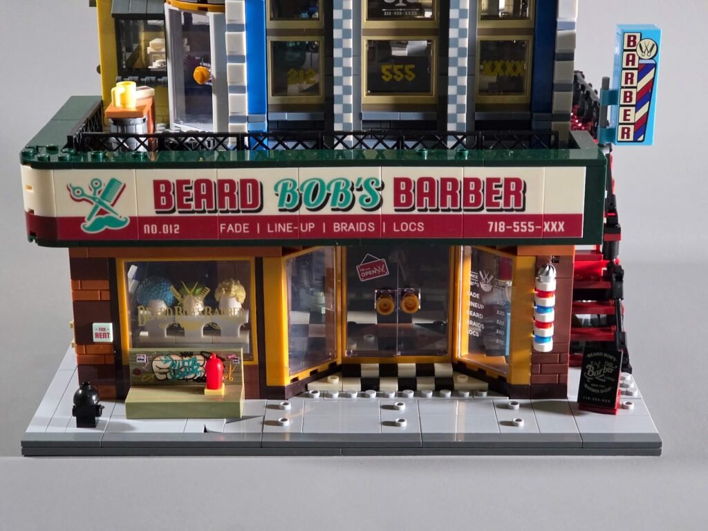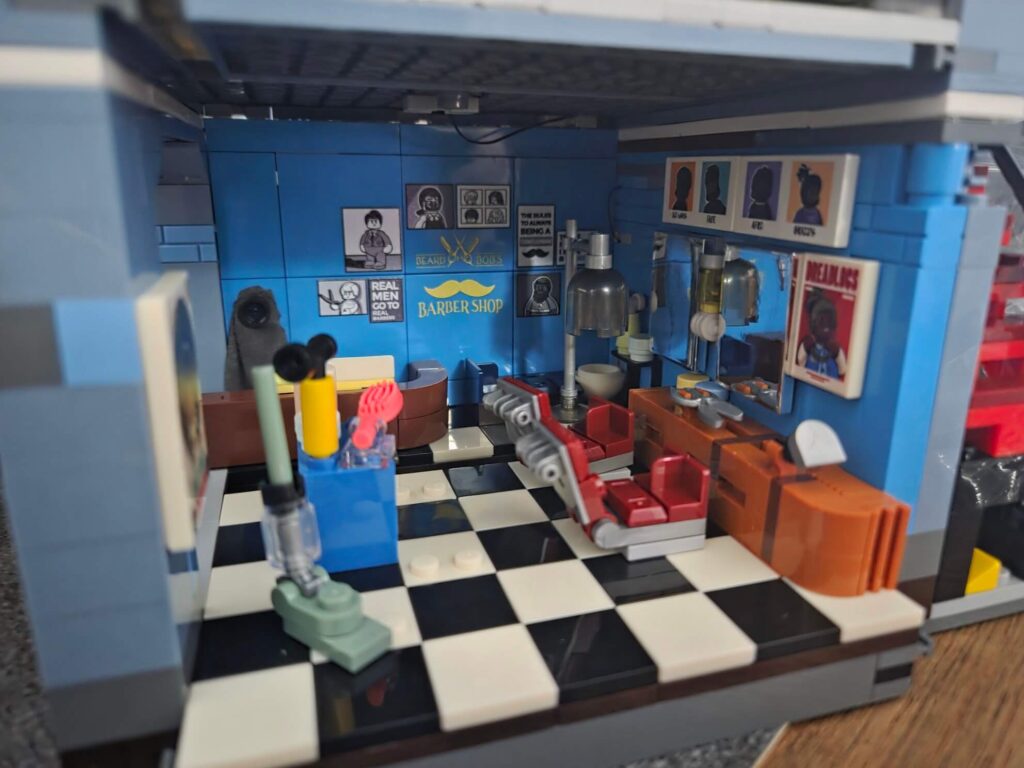 The most recent modular I built before this was the Boxing Club, and while the Barbershop follows a similar overall structure, the way things come together here felt a little different. In fact, I think I actually preferred how parts of this build were handled.