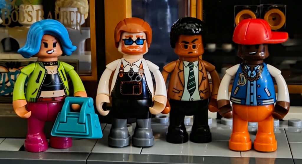 The set comes with four exclusive minifigures, and they perfectly match the whole 1990s Brooklyn vibe we have been talking about throughout this review.