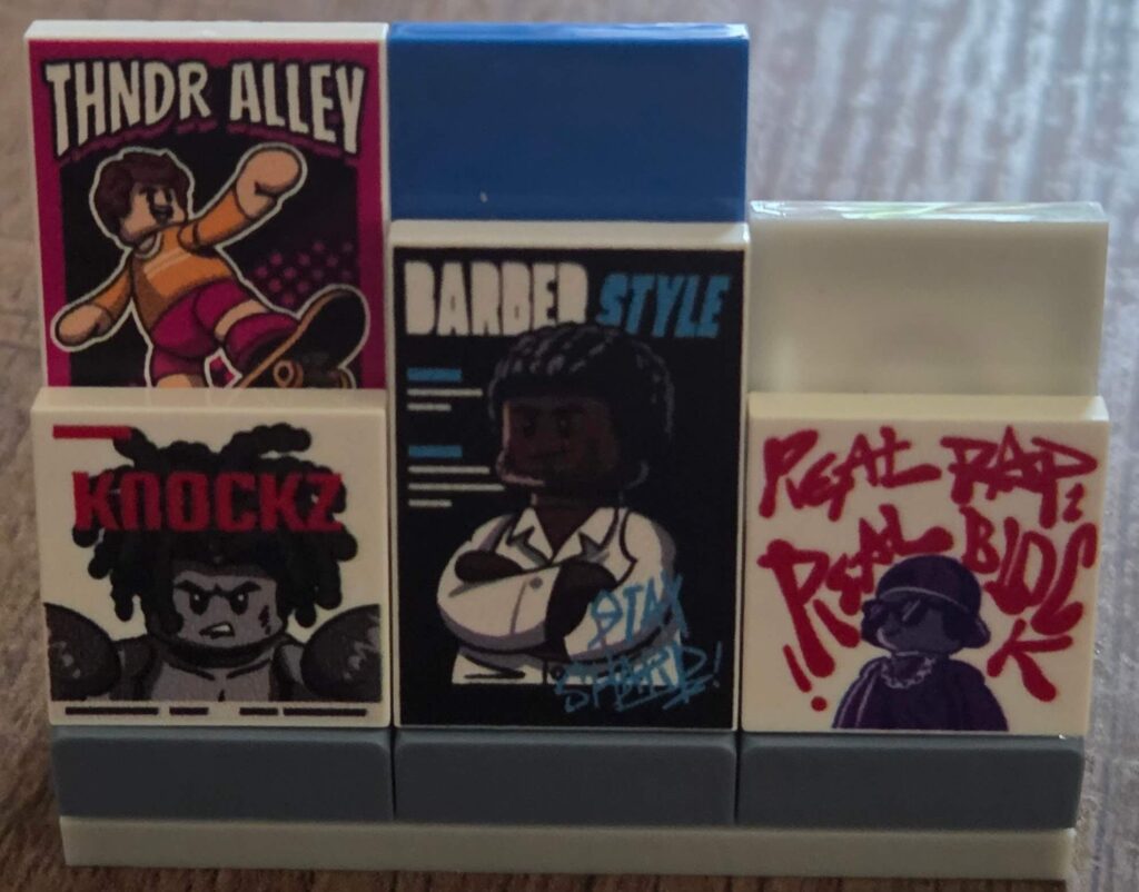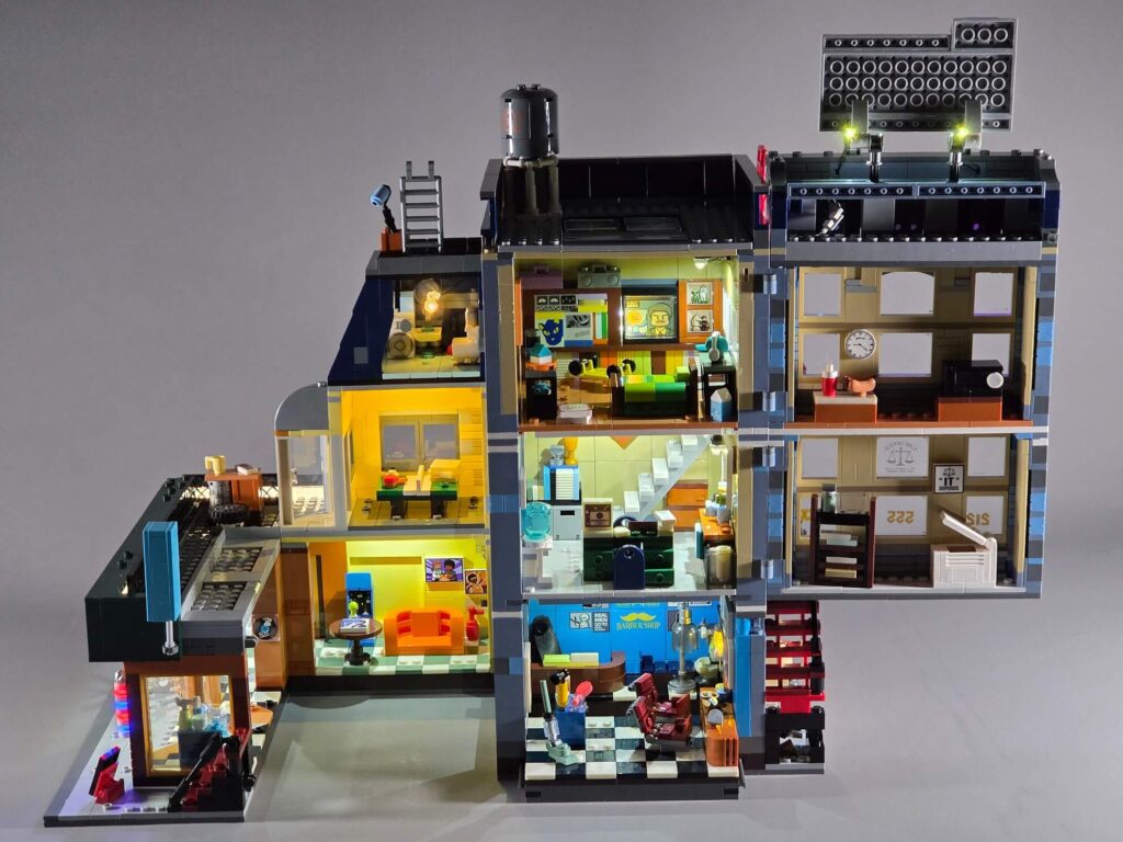 As for the interior, there are simply prints everywhere. From the TV channels and record sleeves in the apartment to the paperwork in the lawyer’s office, we have already covered most of them in the interior section, but they genuinely bring every room to life. I really do appreciate Lumibricks’ commitment to zero stickers. It completely changes the game when it comes to the premium feel of a set.